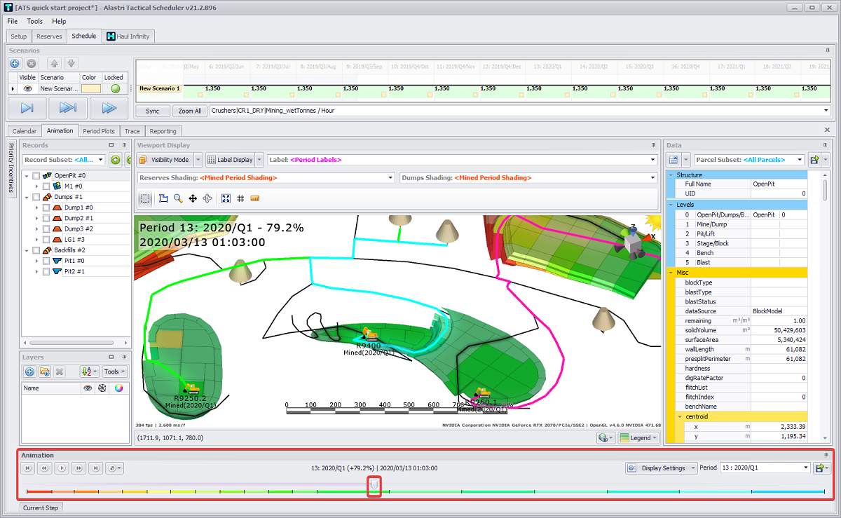 In the Animation tab, move the slider in the bottom Animation panel to see work progress across the periods.