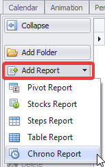Add a new report in the Reporting tab by clicking Add Report button on the left and selecting “Chrono Report” option from its drop-down.