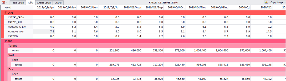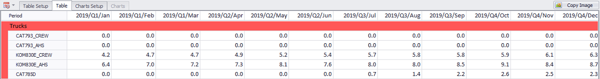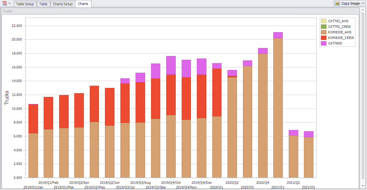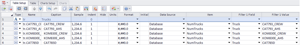 In the Series panel add five truck types and name them accordingly: “CAT793_AHS”, “CAT793_CREW”, “KOM830E_AHS”, “KOM830E_CREW” and “CAT785D”.