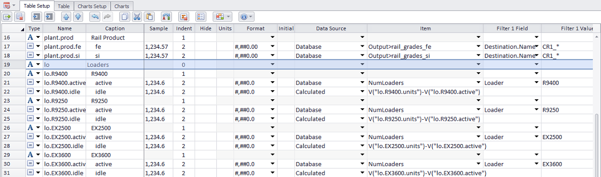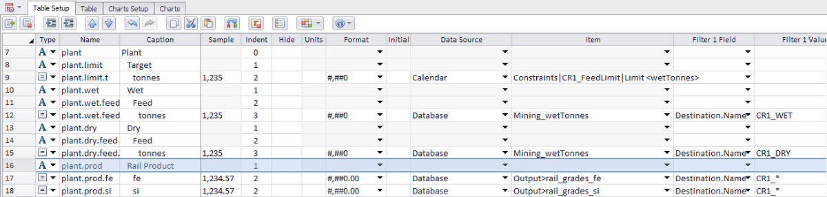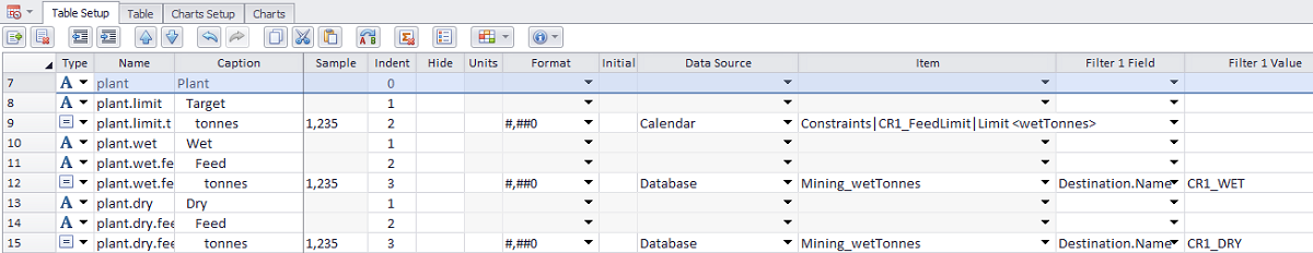 Fill in the Plant Production data in the Table Setup tab as shown below.