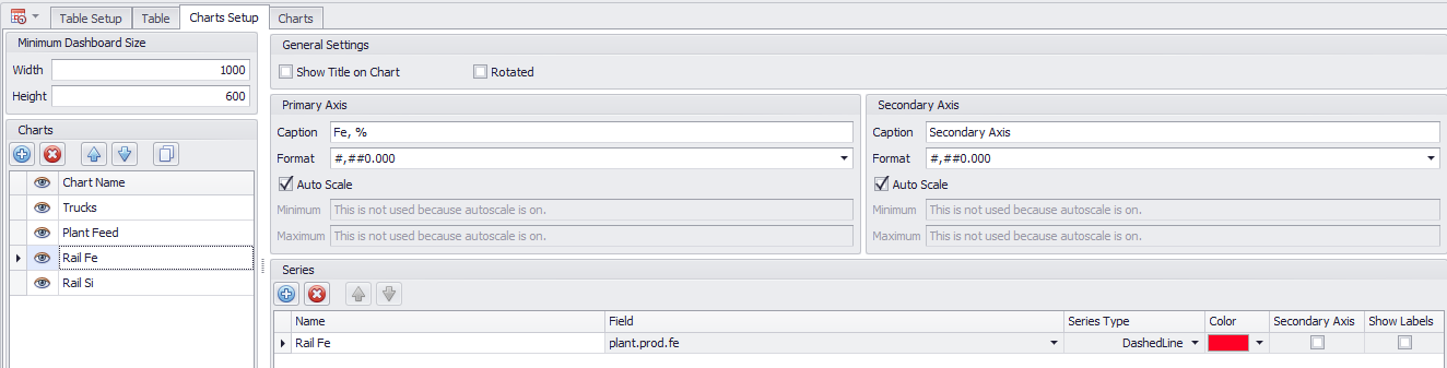 3. Open the Chart Setup tab to set a chart based on previously added fields.