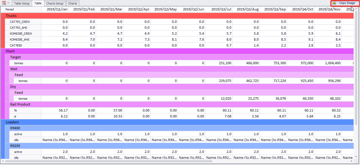 You can export capture of Table and Charts tabs data, by pressing the Copy Image button.