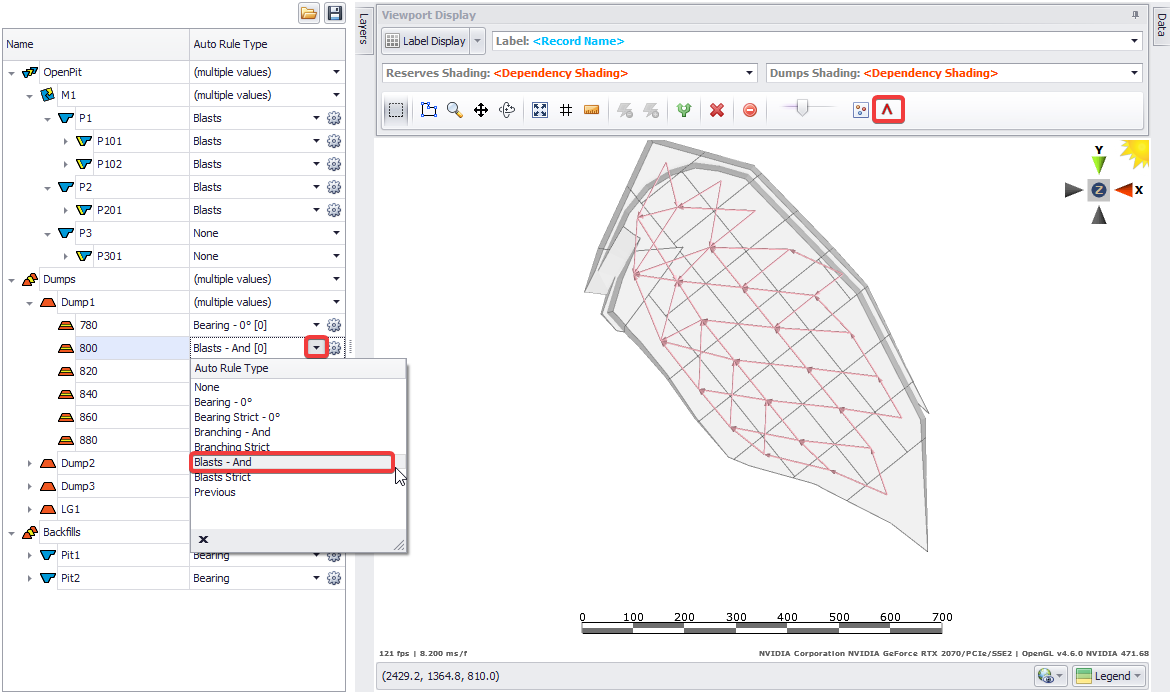 In the Viewport Display area you’ll see selected Lift with pink arrows, showing “AND” auto rule type dependencies.