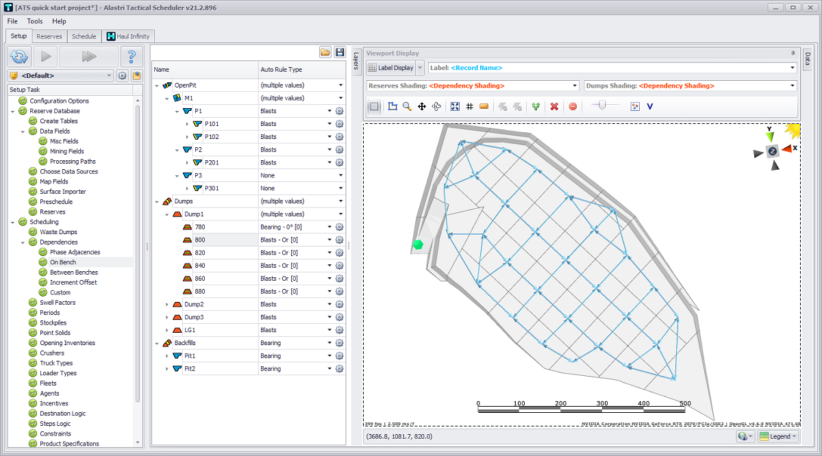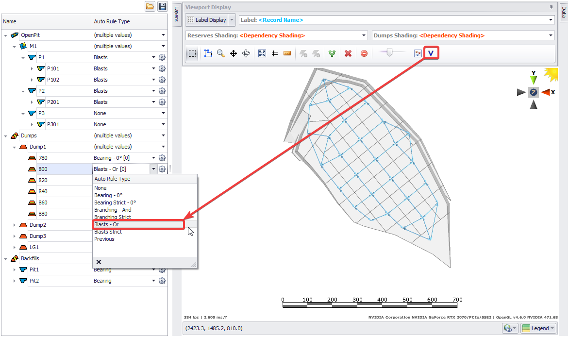 Using Auto Rule Type column drop-down select “Blasts” as dependency for Dump1.