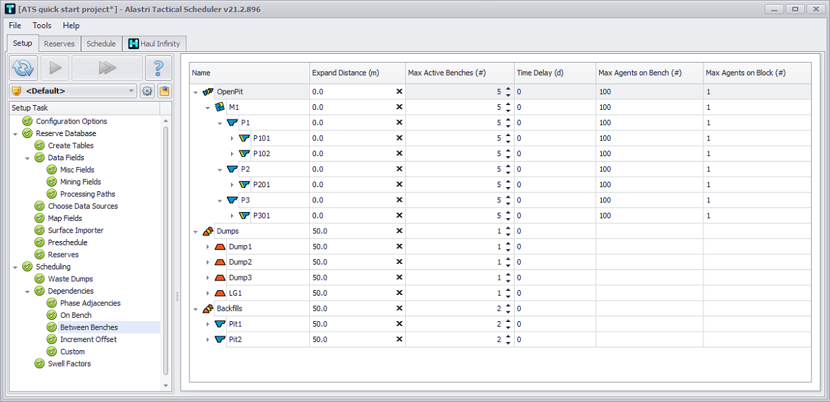 Step Between Benches allows user to plan multiple benches mining in a single phase.