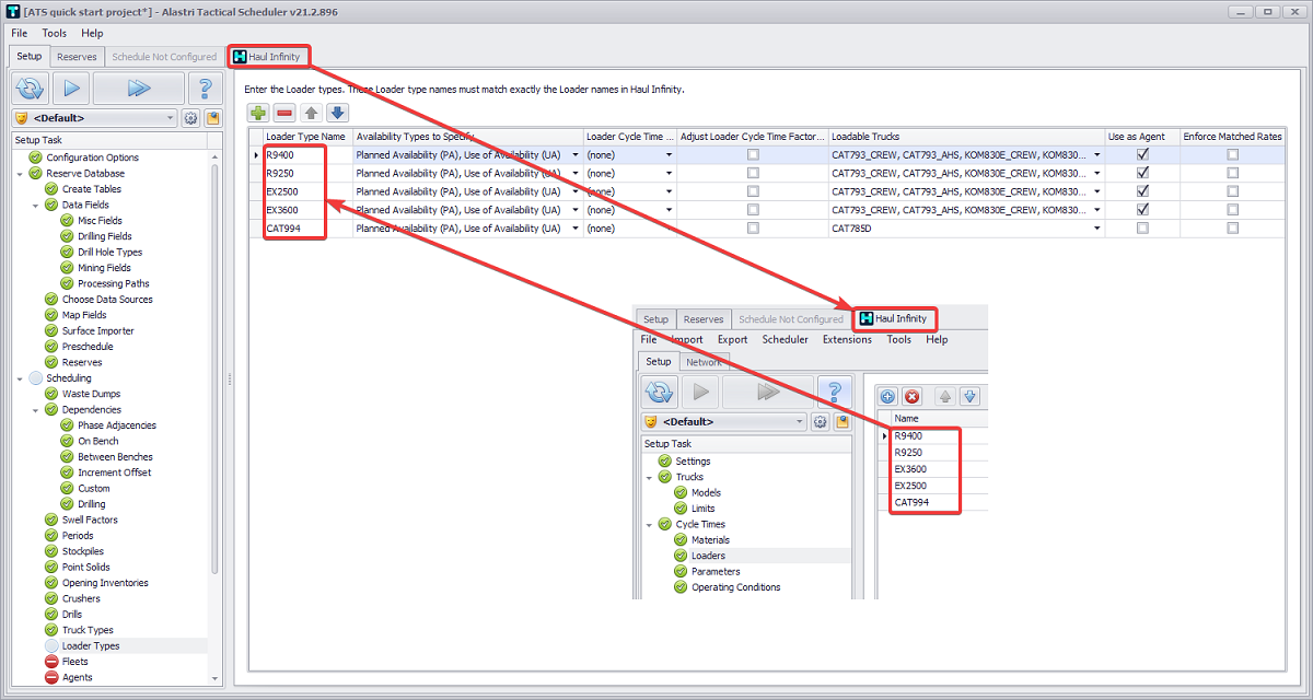 Same as for the previous step, loaders types must be present in Haul Infinity.