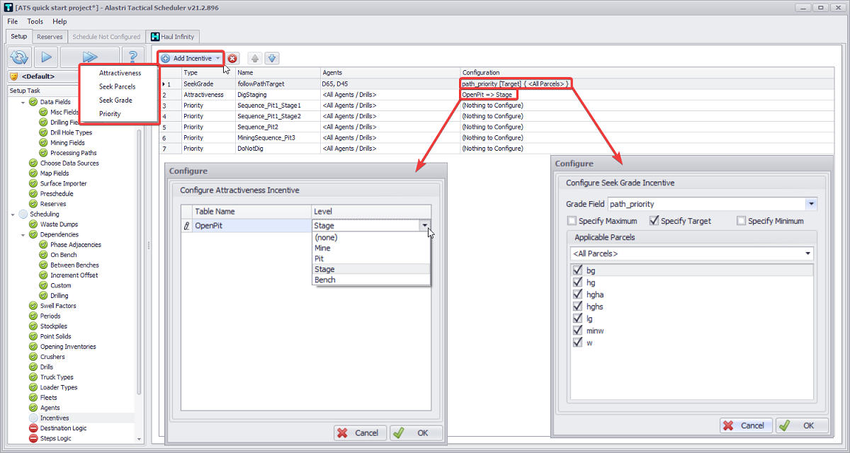 Seek Parcels incentives cause certain material types to be ranked higher by the Agent.