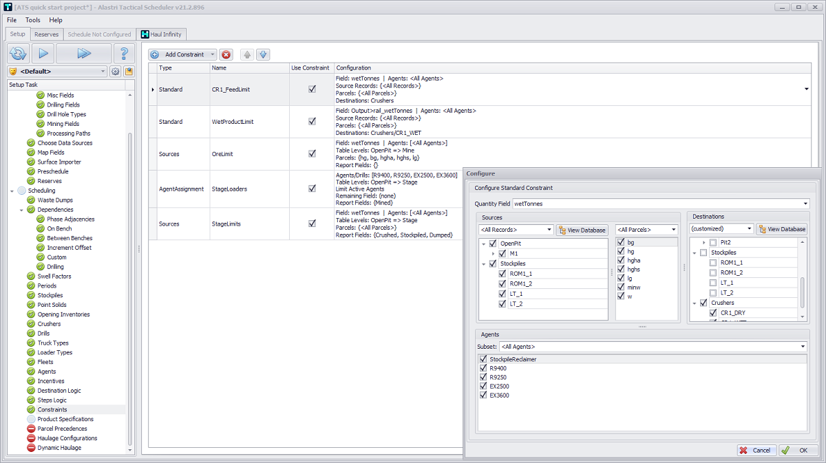 Standard Constraint: limits the material sent to destinations from specified areas. (The Agent may still mine and send the material to alternative destinations.)