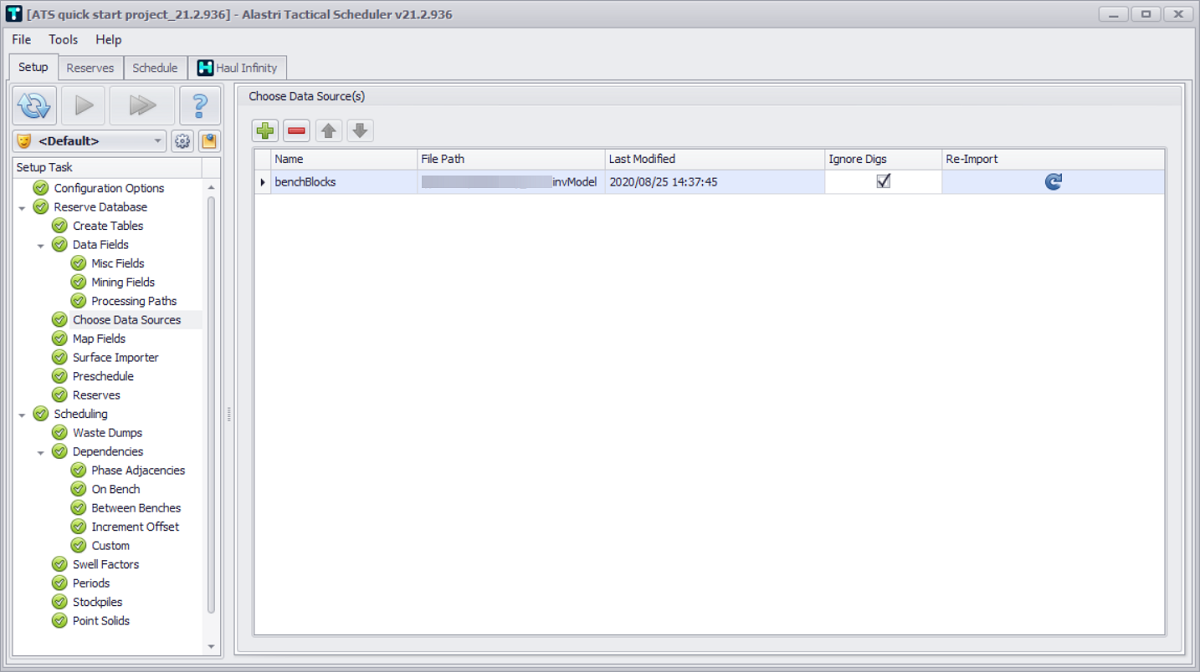 In the Choose Data Sources step import relevant 3D block solids file, exported from Rapid Reserver in the ".invModel" format.