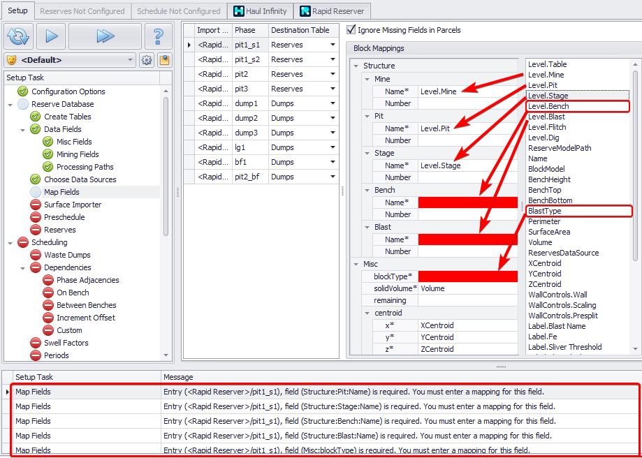 All fields for all Phases must be manually mapped across, by dragging and dropping items from the inventory file headers.