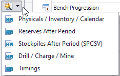 Click the Export Special button and select the required items to export from its drop-down. If you select the options "Reserves After Period" and "Stockpile After Period", specify the appropriate period after which the export will be performed. Note that the “Drill / Charge / Mine” and “Timing” export options are only available after the schedule has run.