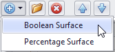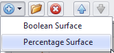 The toolbar at the top of the Surface Importer step contains buttons to add a new type ("Boolean Surface" or "Percentage Surface"), Create a folder, Delete items, and arrows to move records up and down the list.