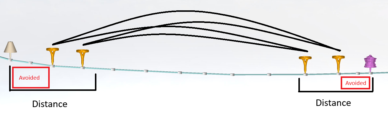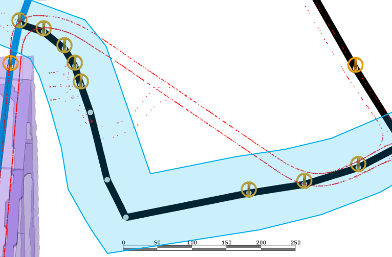 A value of 50 meters means a point will be considered valid within a 50 meter distance around all parts of a segment