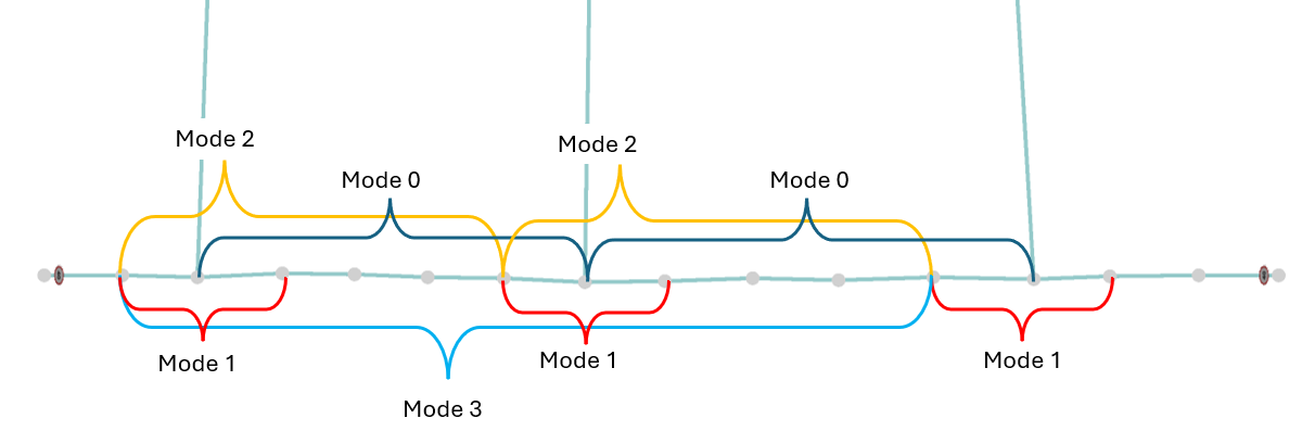 A mode of 0 will create calibrations between the middle of an intersection along a route to the middle of the next intersection.