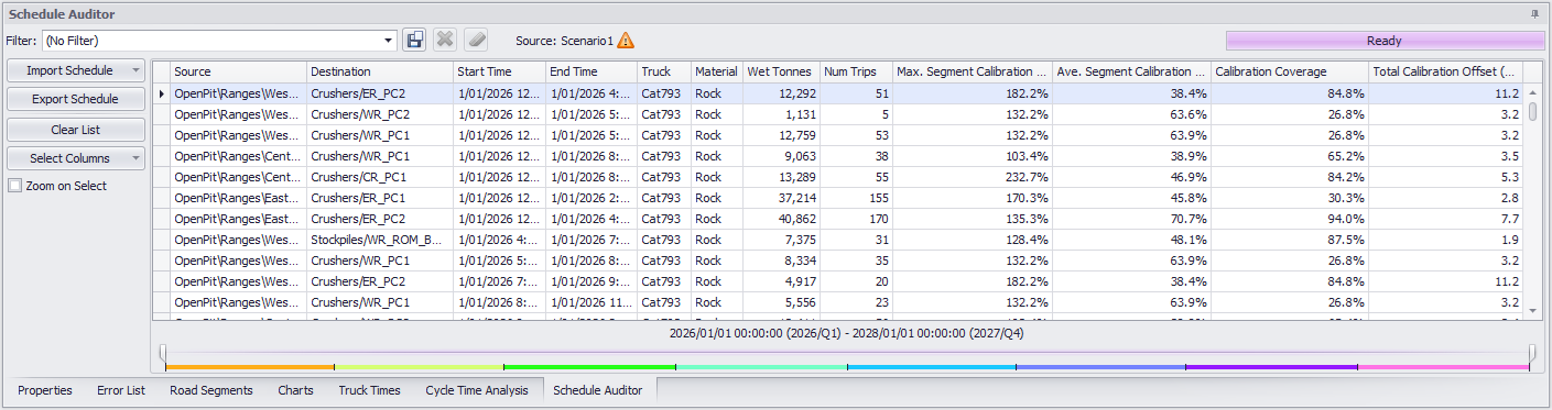 The Schedule Auditor has a few features that can be used to help analyse calibration results.