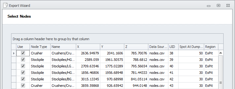 Click the Filter icon to facilitate searching for the specific Nodes to be included in the export.