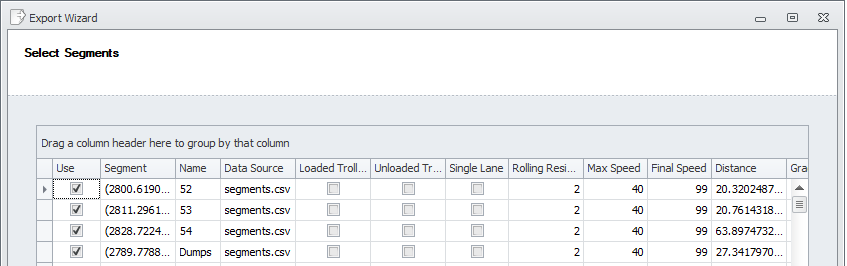 Nodes and Segments can be exported to a CSV file for backing up or transferring between projects.