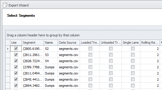 Select the Segments to be exported and click Next to continue.