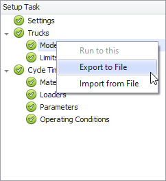 Setup tab > Setup Task list > right click > ”Export to File” and “Import from File“ options > select a name and directory