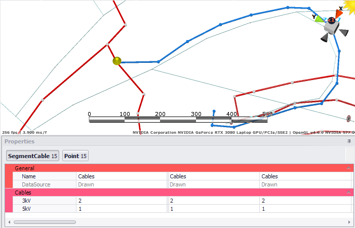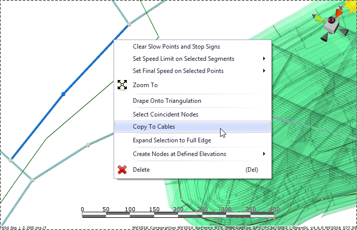 In some cases, cables may run alongside existing haul roads. To simplify duplicating these lines, select the road segments to be duplicated, right click and select Copy to Cables.