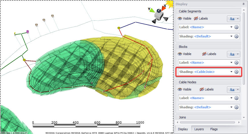 To help validate that blocks can access a power cable, a default shading has been created. This will show what blocks can connect to a cable and which ones can not.