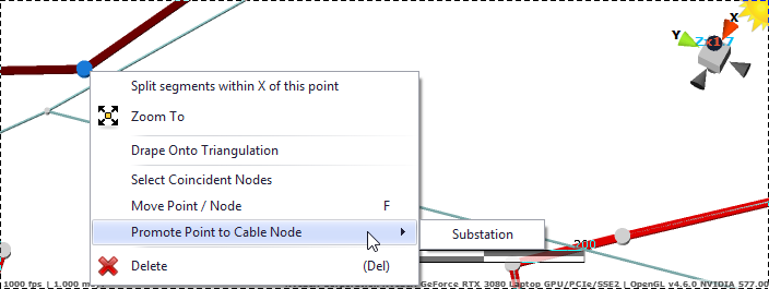 To create a substation, select a cable node, right click, select Promote Point to Cable Node, Select Substation.