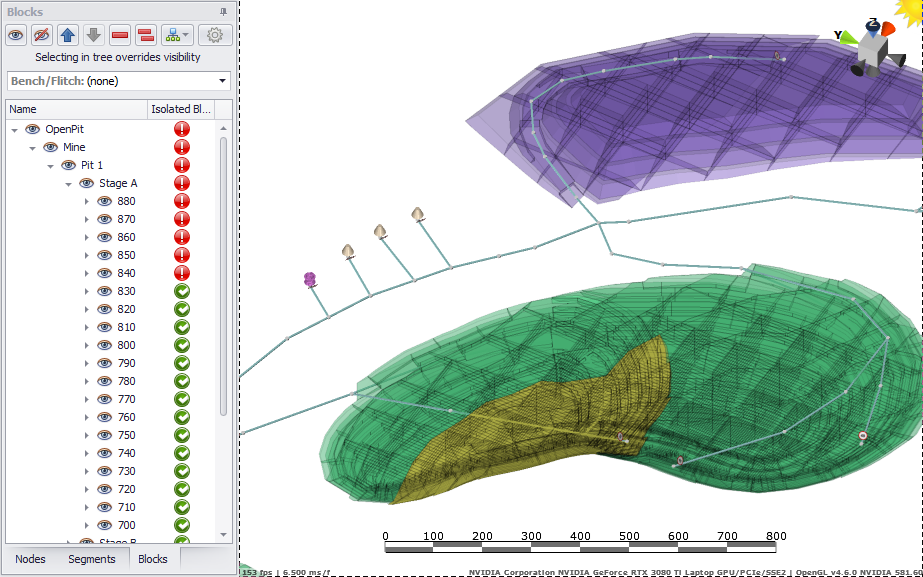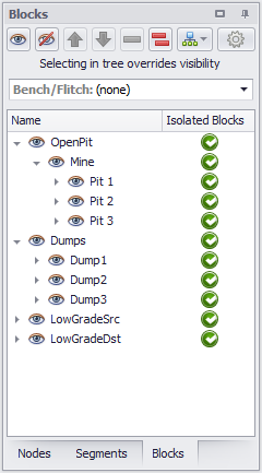 Open the Blocks tab to select, show/hide, move up and down in the list, delete blocks, as well as to import and export joins and set travel level and travel alignment.