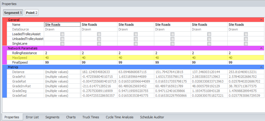 Double click the road of interest (example, entry road to the Stockpiles/Crusher, in pit roads, dump ramp).