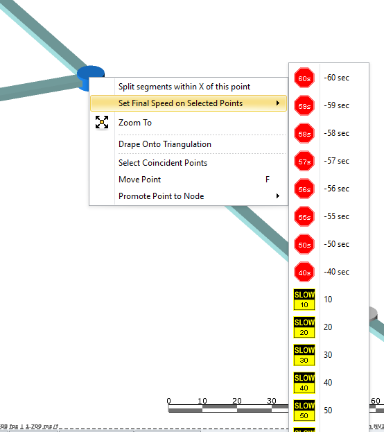 Whenever a new segment is drawn, it is automatically signposted at the default speeds.