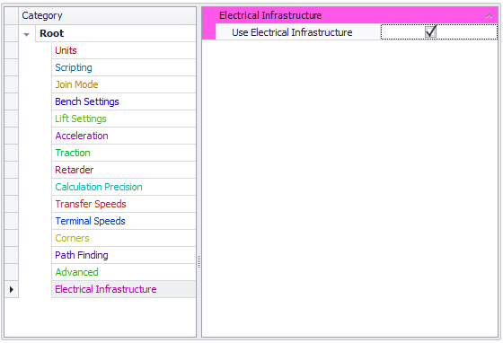 A new Use Electrical Infrastructure setting has been added to Settings. This setting can be ticked on to enable electrical network support. This includes cables and substations.