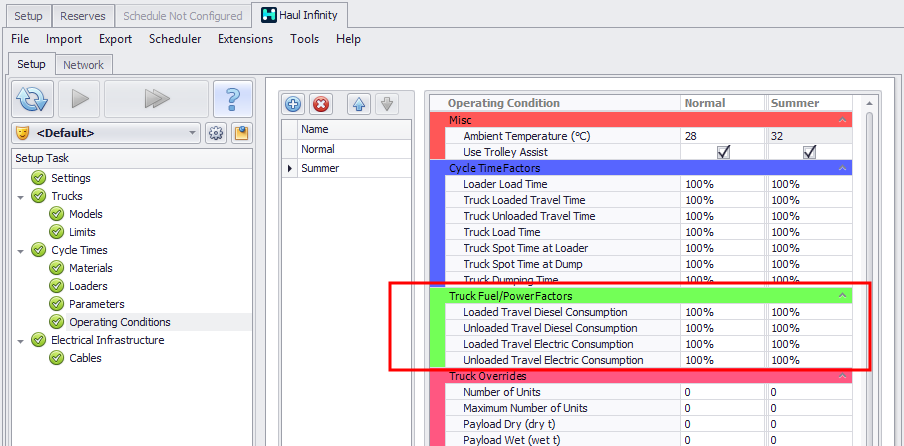 Haul Infinity can now perform the model calibration function on imported FMS (Fleet Management System) data. Calibration uses actual data to override predicted haul times to improve trucking requirements during scheduling.