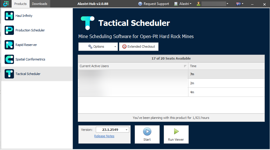 Every single Alastri application is launched from the Alastri Hub, which also manages all Alastri licenses and users for your software package.