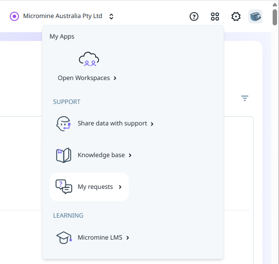 My Requests - Select My Requests to connect with your Support requests in the Zendesk portal for Micromine Australia Pty Ltd.