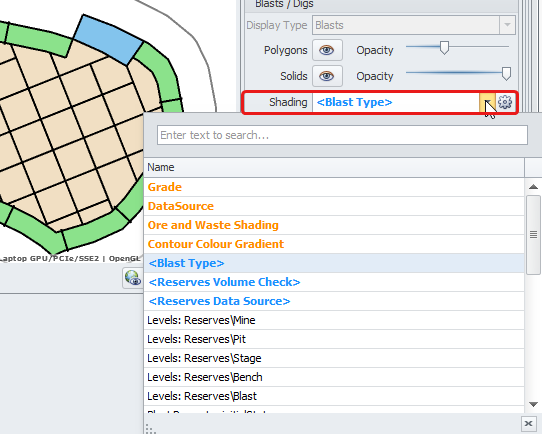 In the Designer tab in Display panel locate Blast section and press Shading drop-down: there is a preloaded list of automatic shadings for the level hierarchy and reserves fields. We can add to this list by configuring custom shading sets.