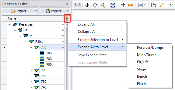 Click on a level to display it in the Viewport. You can also display the whole Reserve/Mine/Pit/Stage/Bench or selected solids using <CTRL> and <Shift> hotkeys.