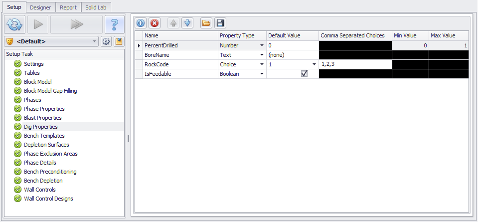 To create new dig properties: