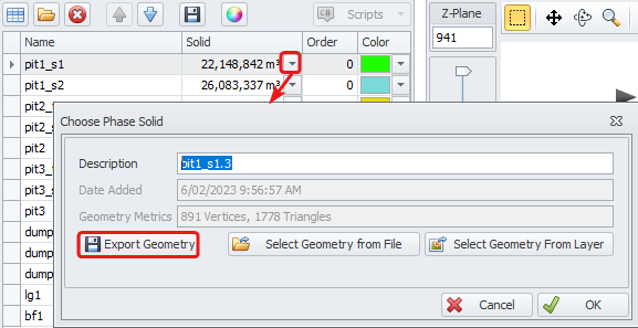 To export the solid for a given phase, in the Phases step, click in the Solid drop-down and choose Export Geometry.