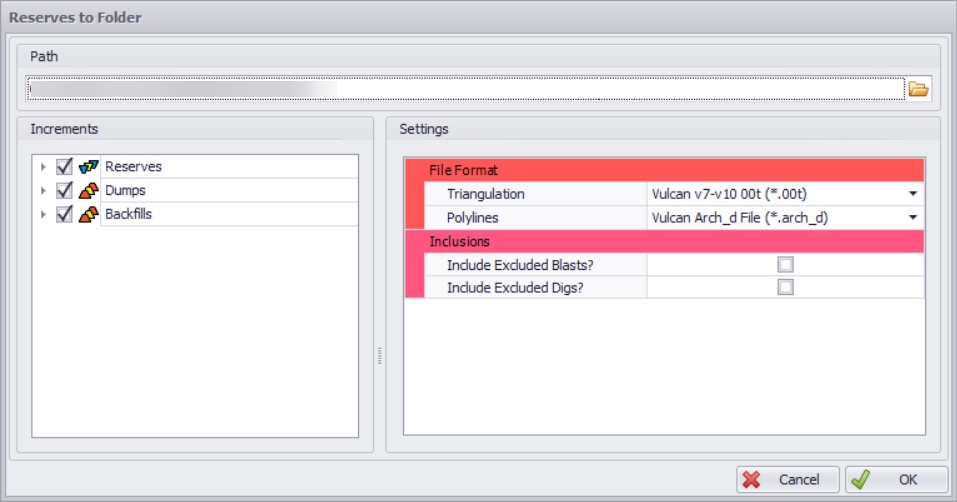 Note that this option is available if only one increment is selected from the tree. If multiple benches, or the whole pit is selected, you’ll only see From Project exporting options, described in the sections below.