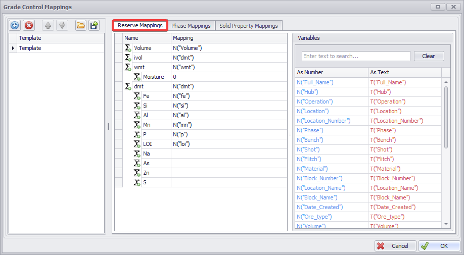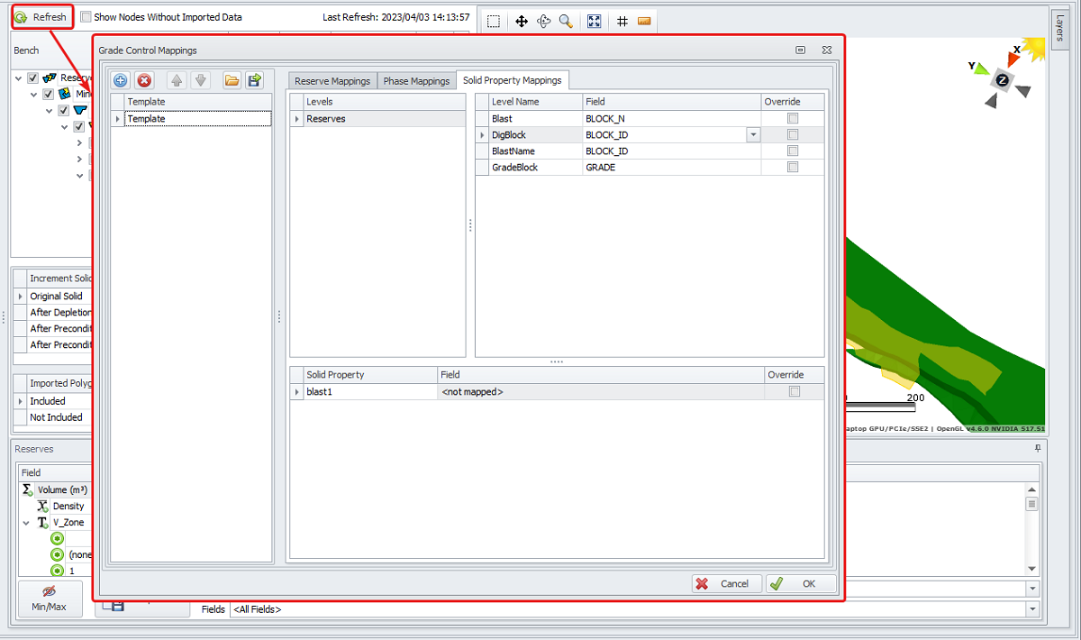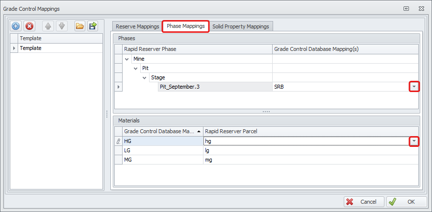 Go to the Phase Mapping tab to map Phases and Materials from Rapid Reserver with Grade Control Database.
