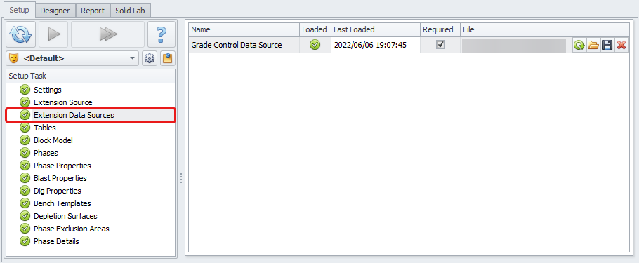 Click the folder icon to import a new Grade Control Data Source file, or specify a path to the new file location.