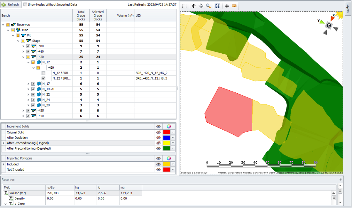 Select grade control block and review its reserves vs block model data.