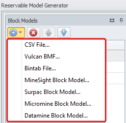 You will be prompted to load your block models from CSV, Surpac (.mdl), Vulcan (.bmf), MineSight (.dat) or Micromine (.DAT) and convert it to Alastri Block Model format (which is .resmodel).