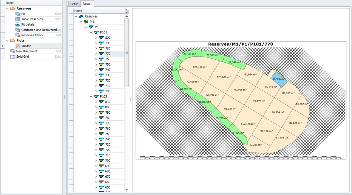 Note that it is not possible to display the level of the entire pit or stage, the selection may only contain benches, flitches and lifts.