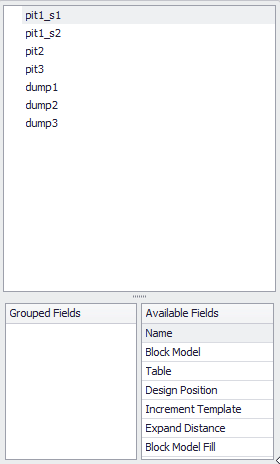 Phases may be grouped and organised by dragging from the Available Fields column into the Grouped Fields column. For example, drag the "Table" field into the Grouped Fields area to review the levels hierarchy, or the "Bench Template" field to check for the same height templates. |