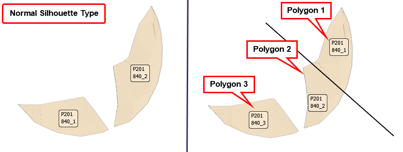 2. Selecting “Normal” type sets silhouette Expand Distance to zero, meaning that each part of a bench will be seen as a separate polygon. |