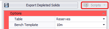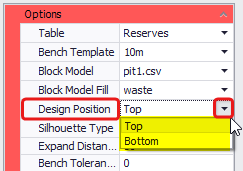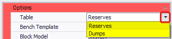 Specify the table type applicable to the selected solid: Reserves/Dumps/Backfills. Tables are available from the drop-down are created in the Tables Setup Step. |
