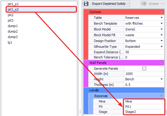 Specify the “Mine”, “Pit”, “Stage” level names for each phase of the Reserves table. The names must be unique and not duplicated. Otherwise, an error message will be issued. |
