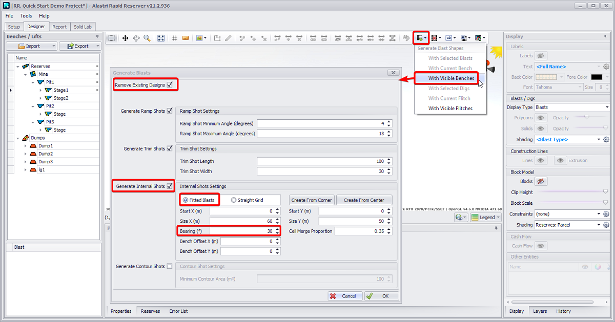 Or Blasts created by Rapid Reserver can be exported and used in another software for drill and blast design.