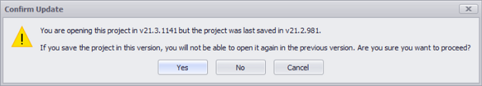 If you do open a project in a version rather than it was saved in, the message prompts will come up, showing which version project was last saved in.