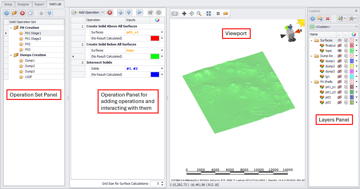 Create a solid below the Pit1_Stage1 design and the natural surface file.